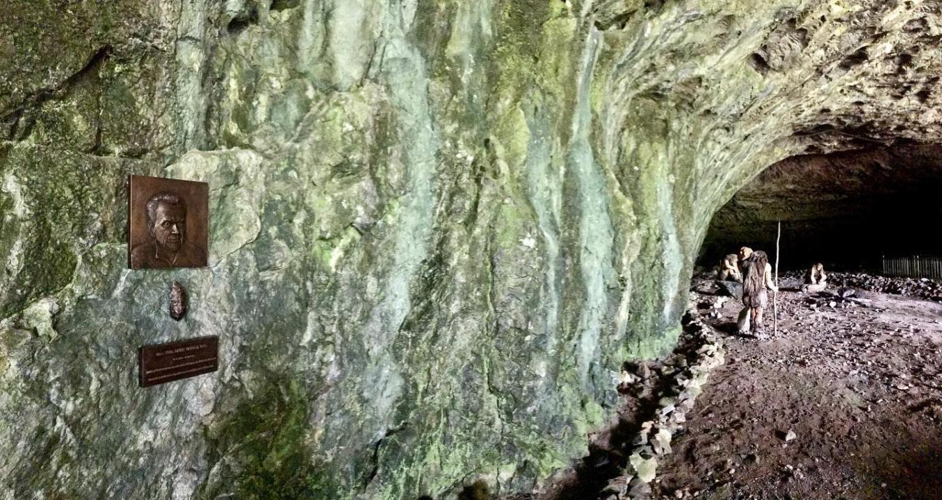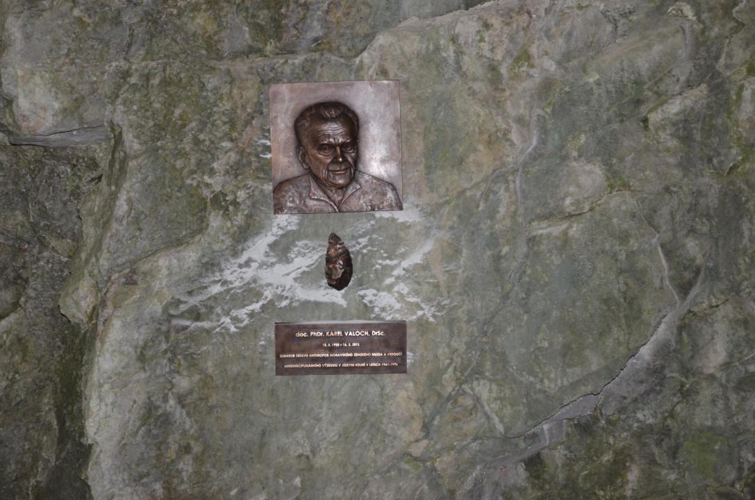 Pamětní deska K. Valocha v jeskyni Kůlna, 11. 6. 2020